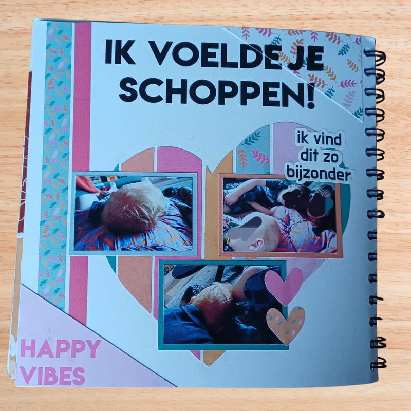 In the book you will find a page per week to fill in how you feel, what your ailments are and there is space to paste your best photos. But you can also put a mood board for the room in it, keep track of the best lists and there is room for the parents to register.