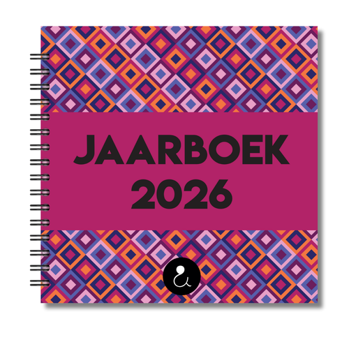 Jaarboek 2026 | Invulboek 2026 | Fotoboek Jaarboek | Ruitjes Roze Paars Oranje
