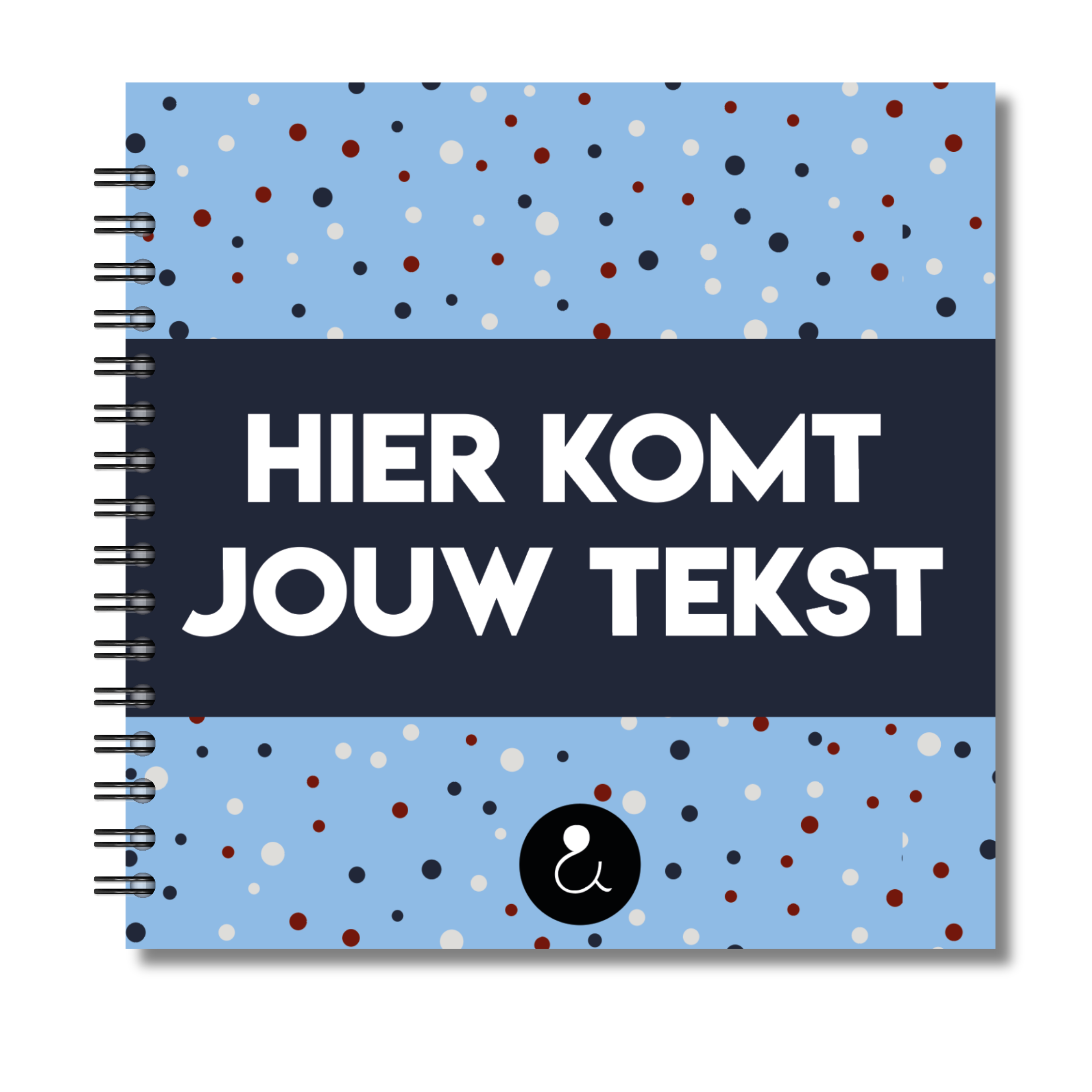 Plakboek Op Maat | Fotoboek Eigen Tekst | Gepersonaliseerd Scrapbook | Vierkant 21x21cm | Blauw Stipjes
