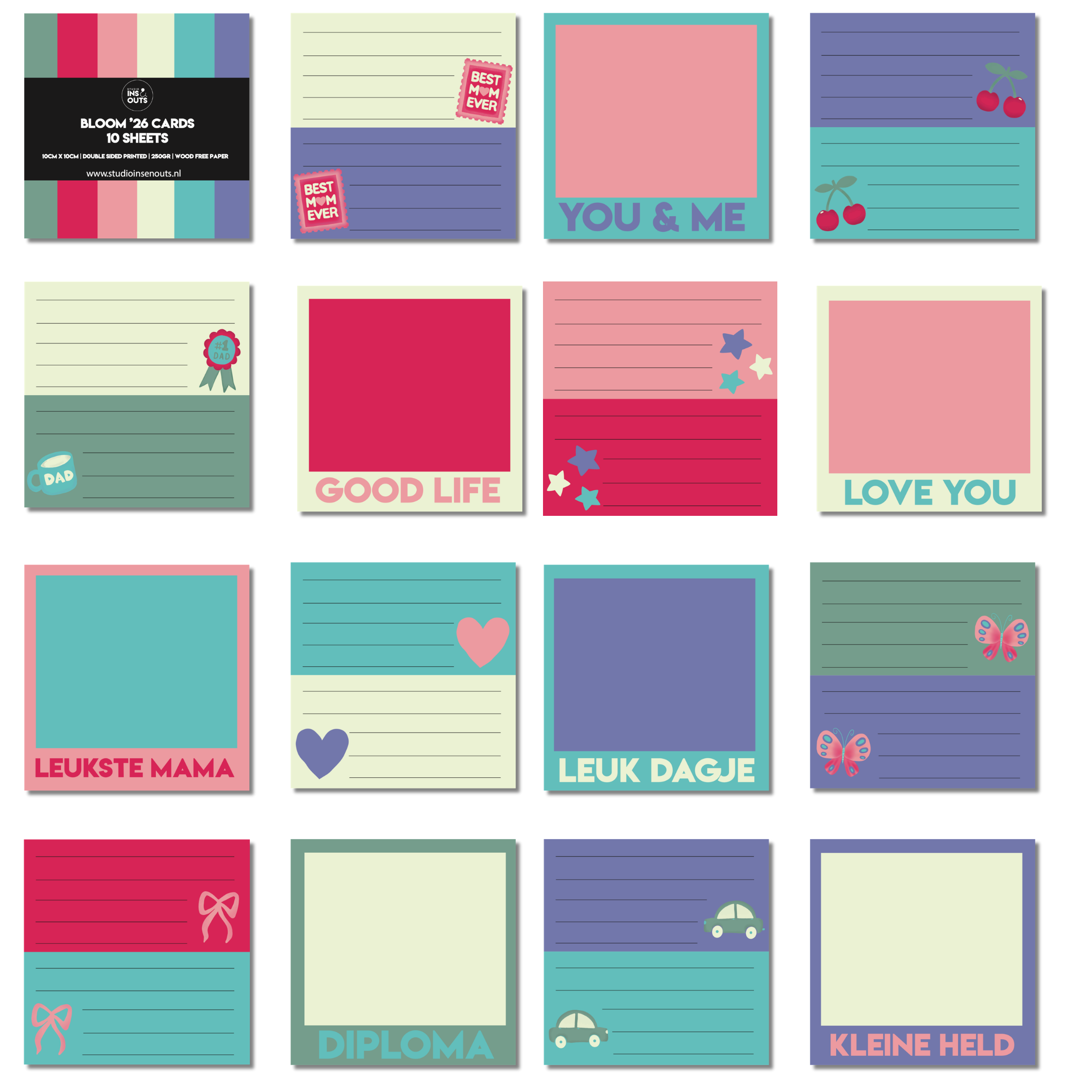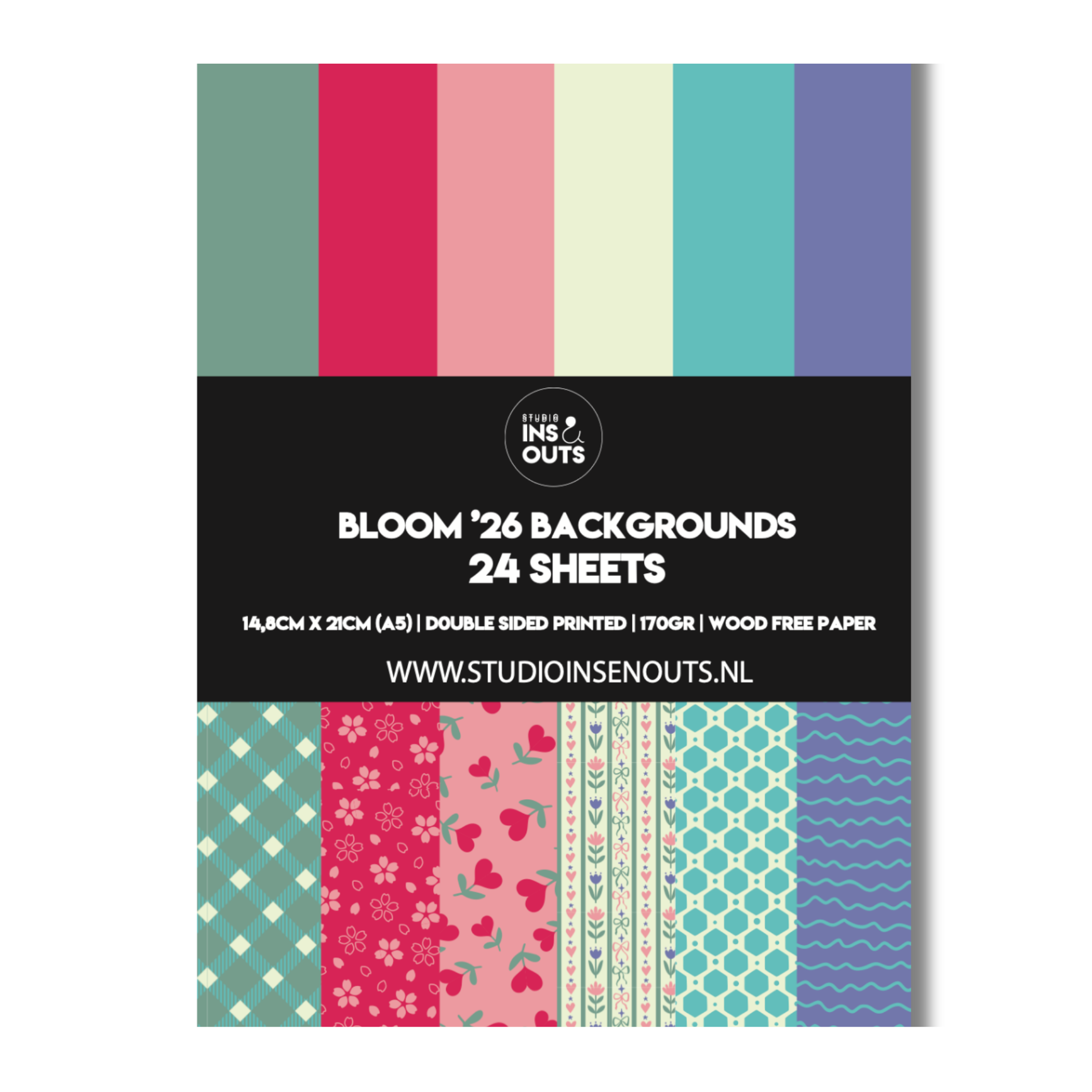 De Bloom ’26 collectie van Studio Ins & Outs is een complete scrapbook set met een frisse, vrolijke uitstraling. Deze collectie is ontworpen voor pagina’s over opgroeien, mijlpalen, familie en dagelijkse herinneringen. De set bevat een paperpad, stickers, washi tapes en kaartjes die perfect op elkaar zijn afgestemd. De herkenbare Bloom kleuren groen, fuchsia roze, lichtroze, crème, blauw en paars zorgen voor een speelse en creatieve basis voor scrapbooking, journaling, invulboeken en fotoboeken.