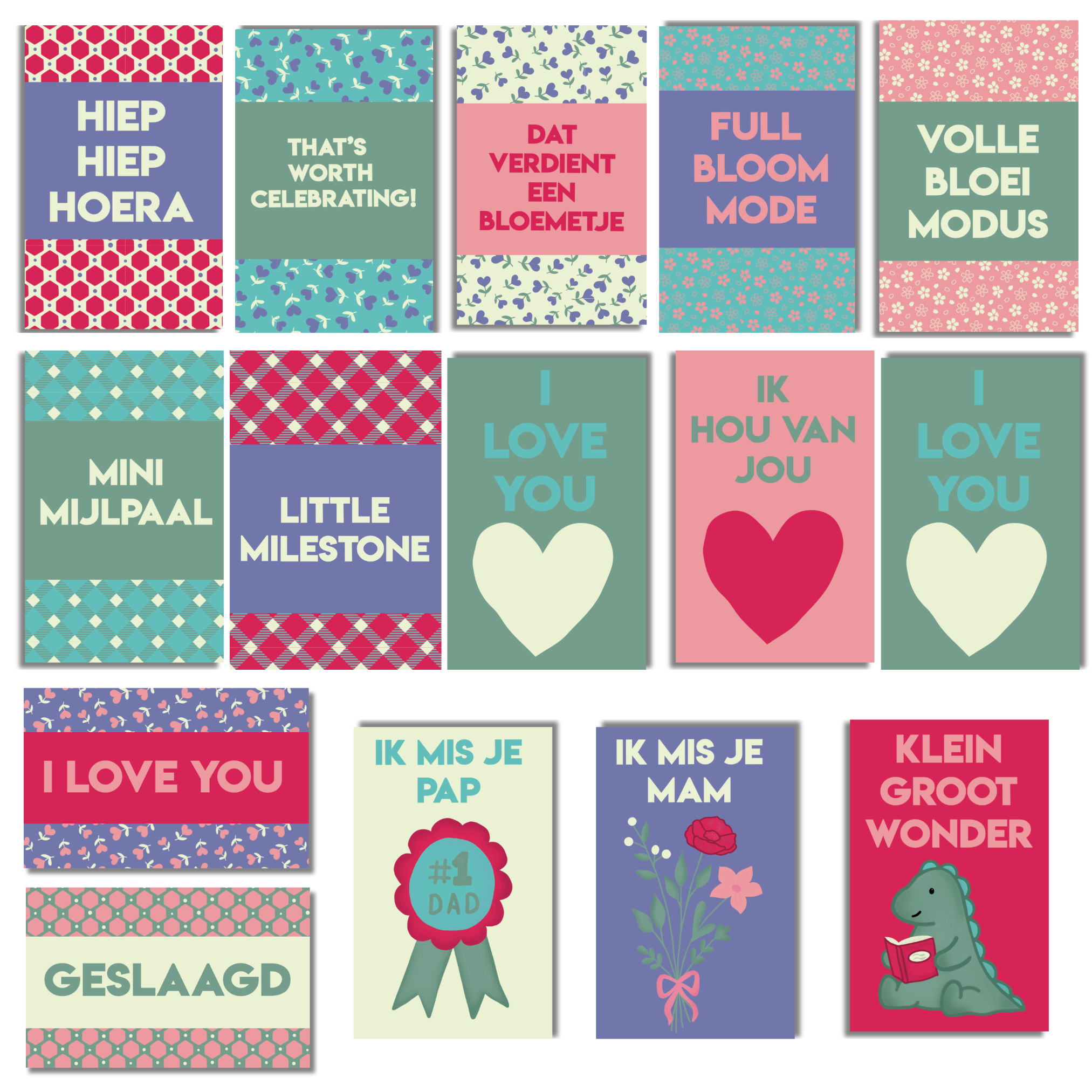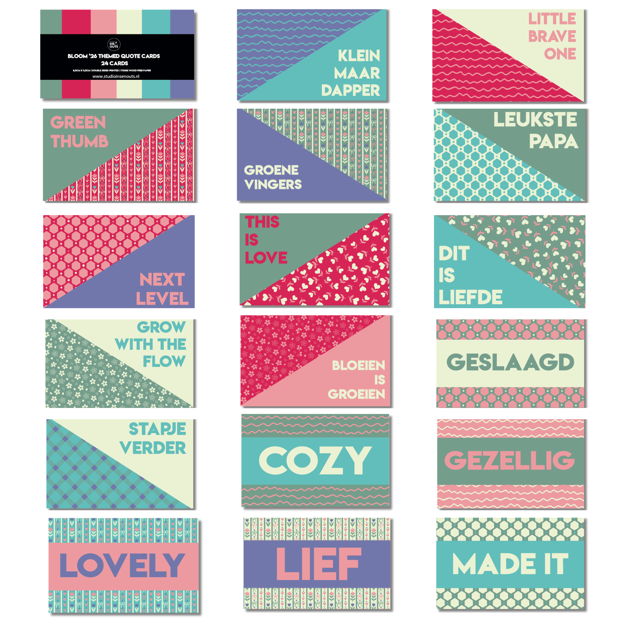 Quotekaartjes: 24 kaartjes (ca. 6,4 × 9 cm) met korte teksten en quotes over groeien, mijlpalen en mooie herinneringen. Ideaal voor scrapbookpagina’s, fotoboeken en journals.
