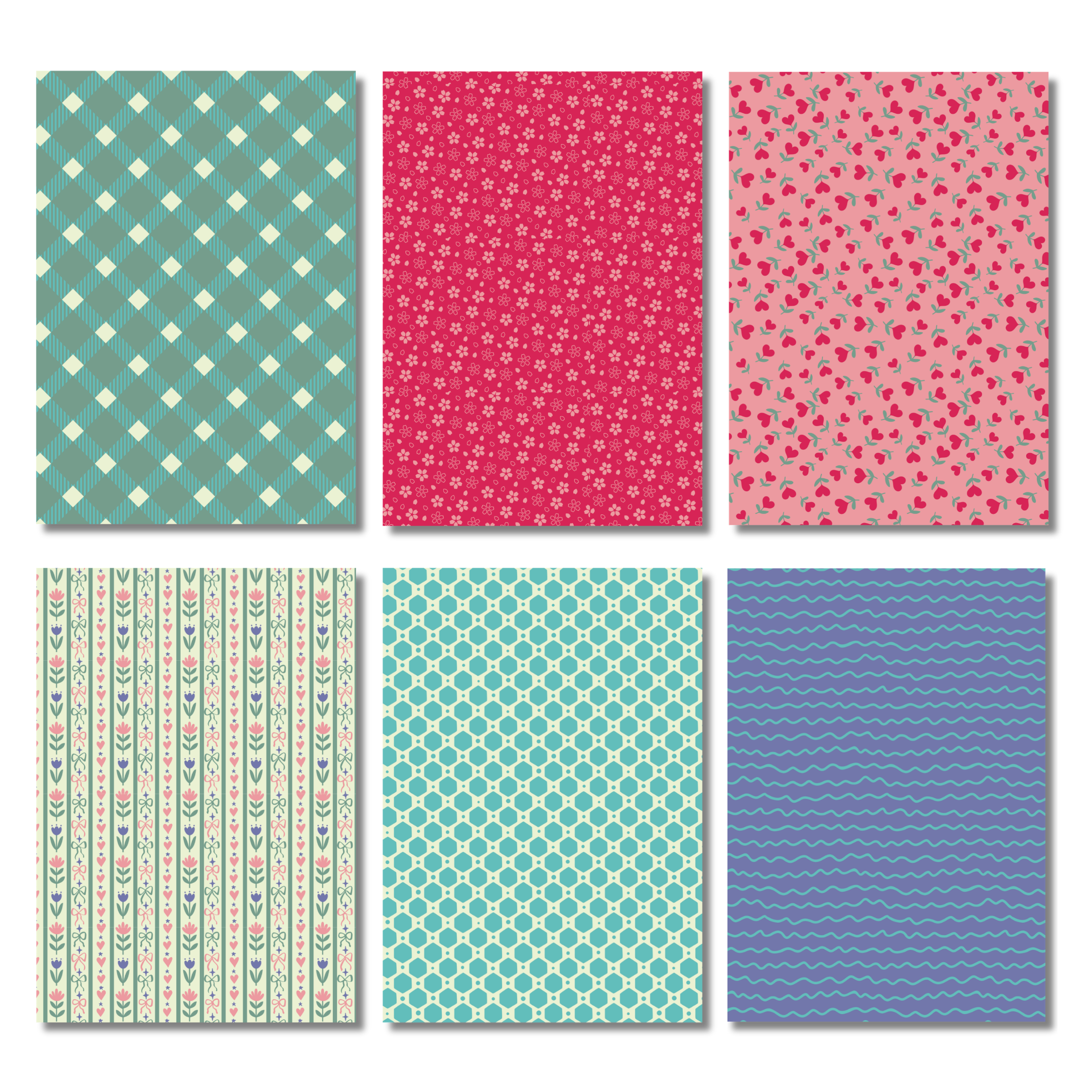 De Bloom ’26 collectie bestaat uit een kleurenpalet van groen, fuchsia roze, lichtroze, crème, blauw en paars. De patronen die je in de collectie terugziet zijn ruitpatronen, kleine bloemetjes, hartjes, hexagons en grafische lijnen. Deze combinatie geeft je pagina’s een vrolijke uitstraling en maakt het makkelijk om foto’s, teksten en labels overzichtelijk te combineren in je scrapbook of journal.