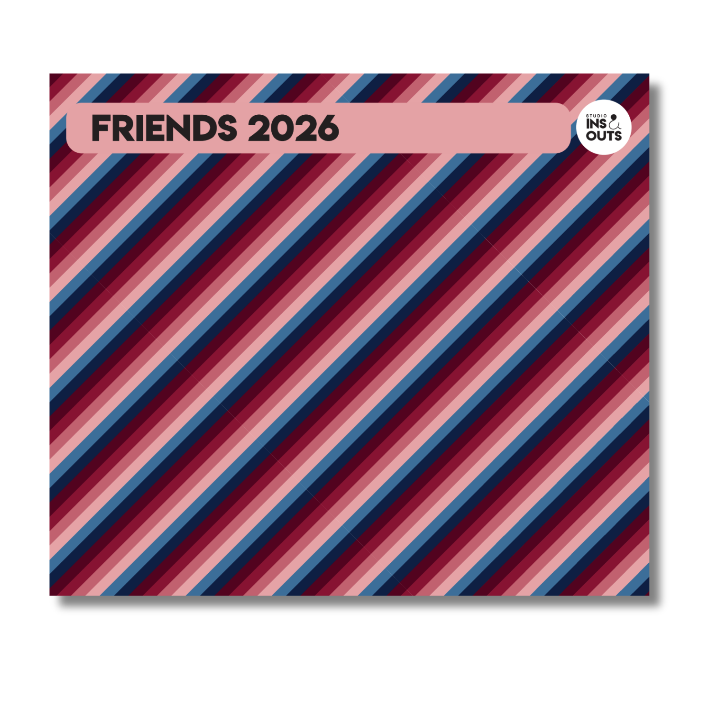 Het thema van Friends’26 is vriendschap. De kleuren lichtroze, oudroze, rood, bordeaux, blauw en donkerblauw zorgen voor een rustige maar duidelijke uitstraling. De patronen bestaan uit hartjes, strikjes, ruiten, hexagons, hokjes en strepen.
