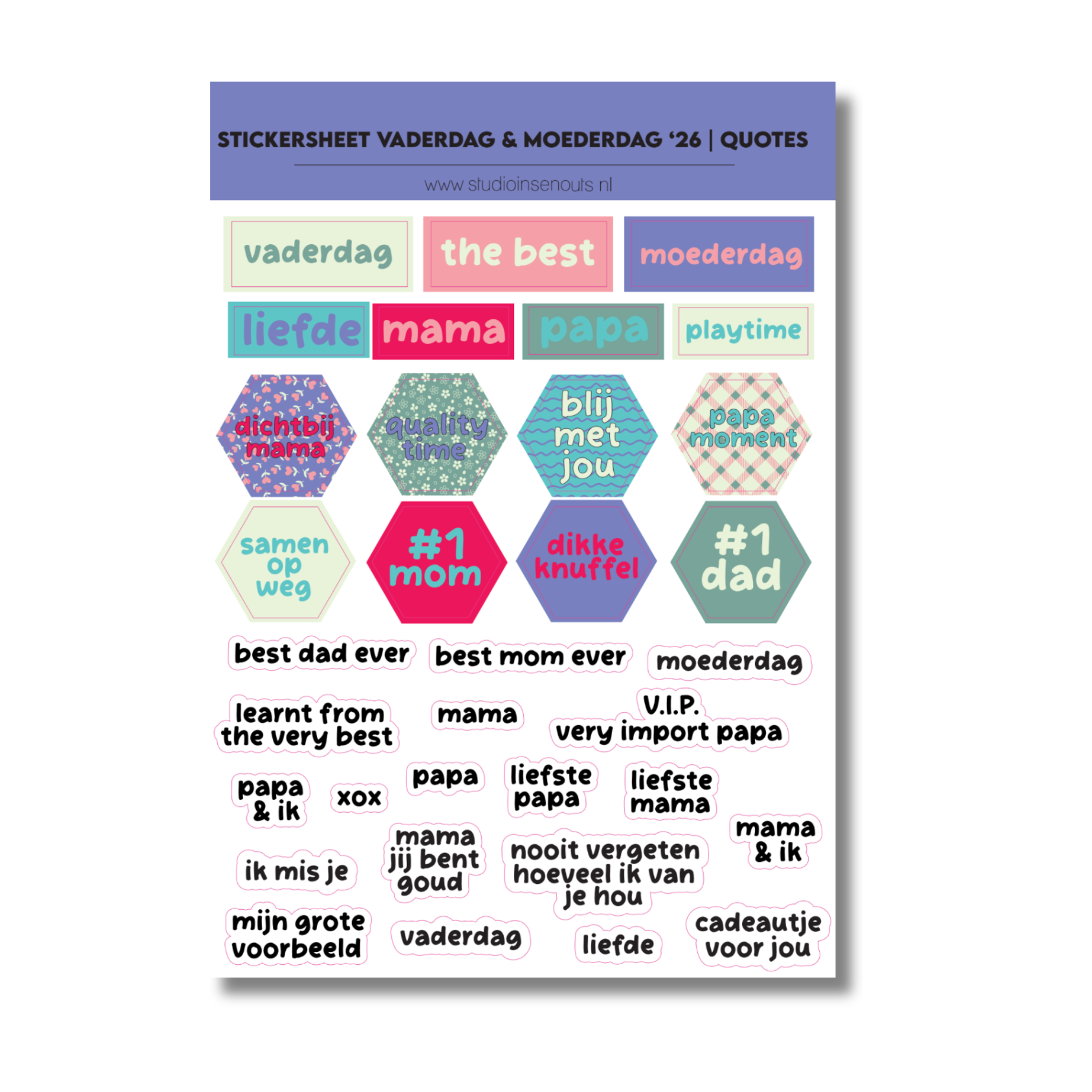 - Stickervel Quotes met korte teksten en woorden die passen bij papa, mama en familiedagen zoals best mom ever, #1 dad, love en dank je