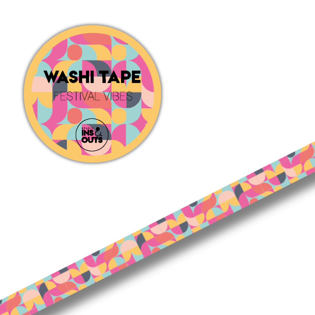 Deze brede decoratieve tape is speciaal ontworpen voor invulboeken en plakboeken van Studio Ins & Outs. Combineer met andere kleurrijke producten uit je collectie voor een unieke creatieve look vol festivalvibes.