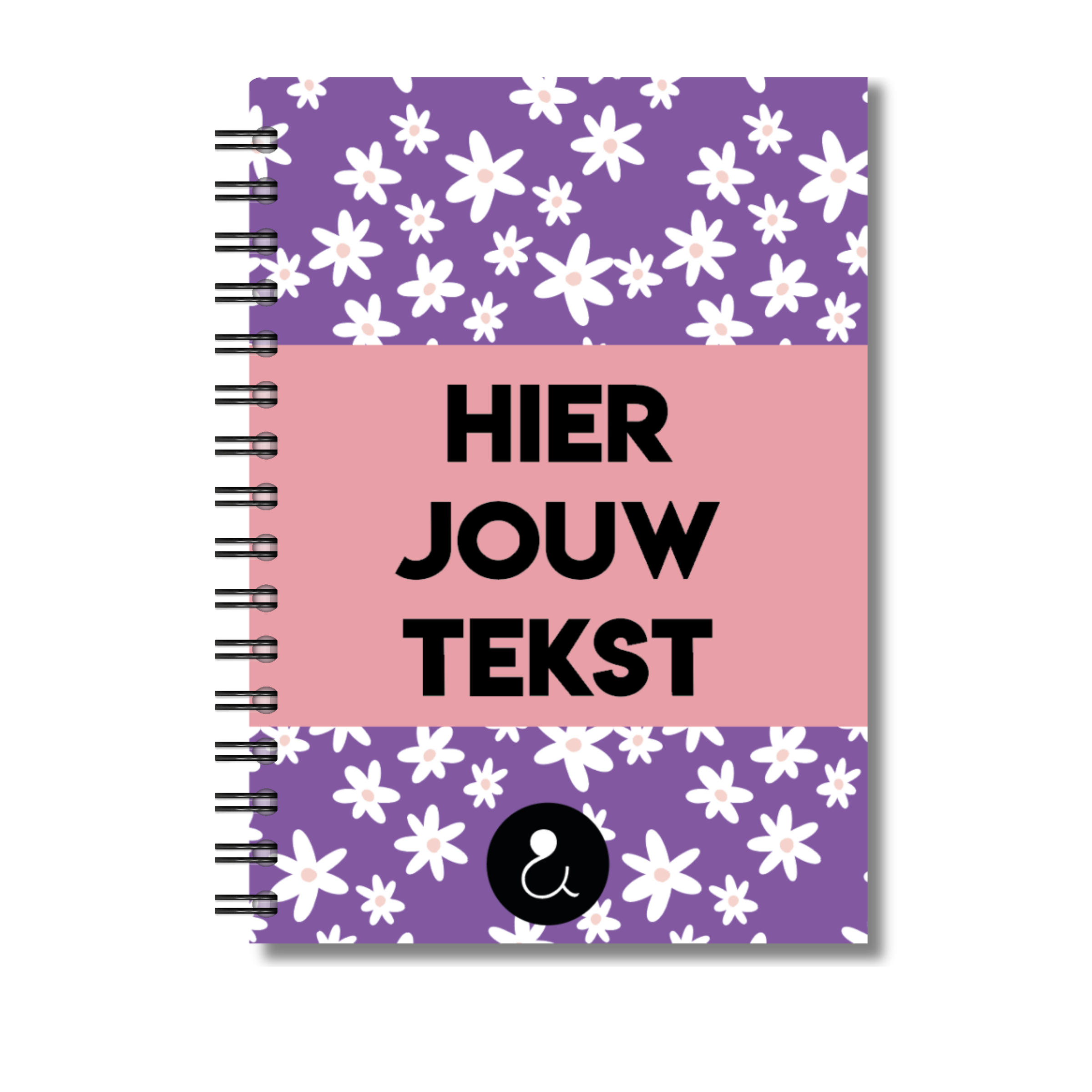Dit paarse A5 fotoboek met witte bloemetjes is volledig te personaliseren met je eigen tekst of naam op de kaft. Het compacte boek met ringband heeft stevige blanco pagina’s van dik papier, perfect voor foto’s, notities of creatieve ideeën en natuurlijk scrapbook lay-outs. In dit leuke kleine fotoboekje maak je de leukste foto scrapbook creaties! Een praktisch gepersonaliseerd fotoboek of plakboek voor elke gelegenheid.