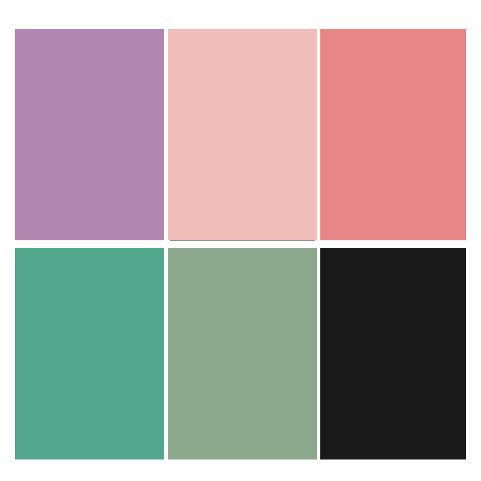 - Kleuren: paars, roze, mintgroen, zalm, zwart