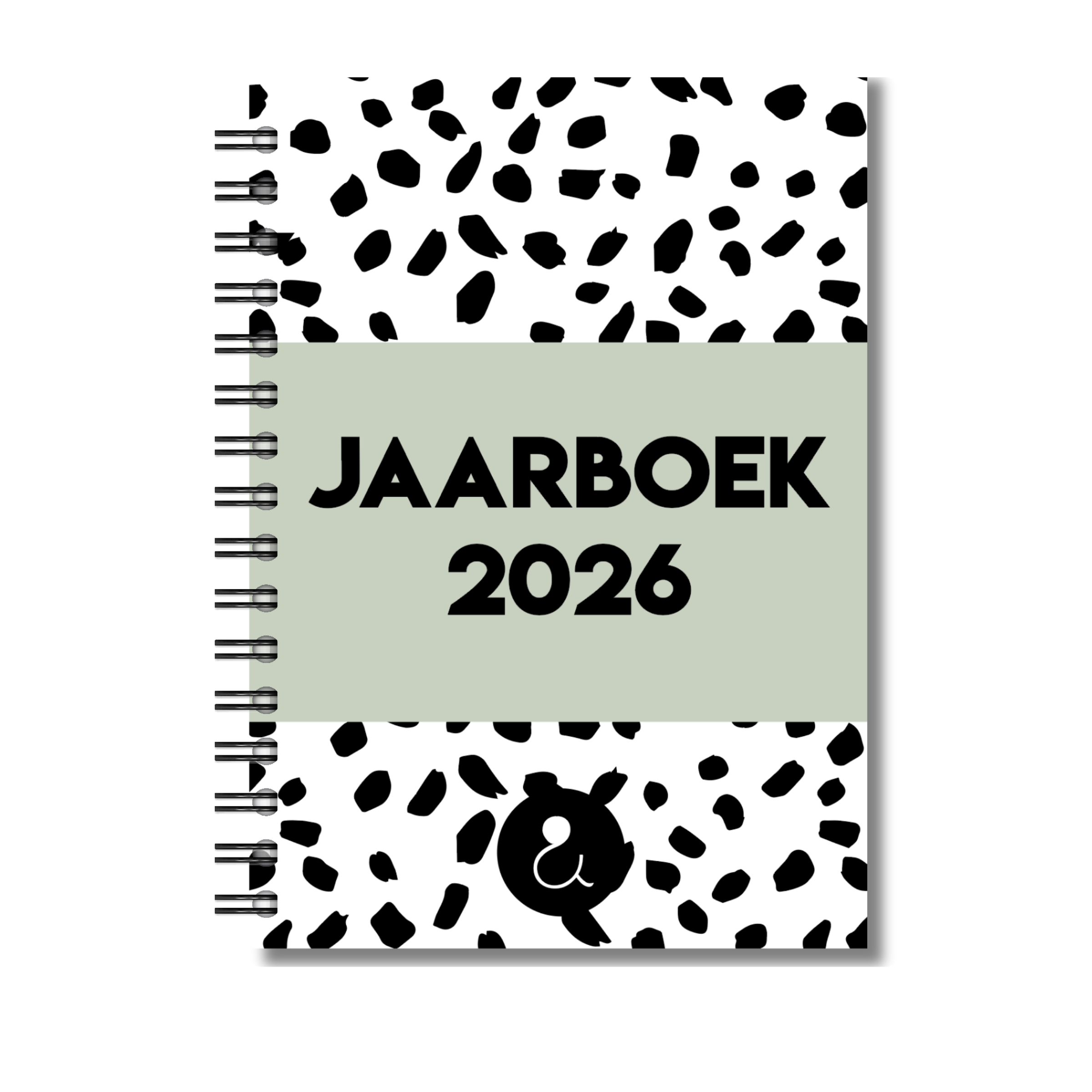 Jaarboek 2026 A5 | Blanco Jaarboek A5 2026 | Fotoboekje Jaarboek | 14,8x21cm | Dots Groen