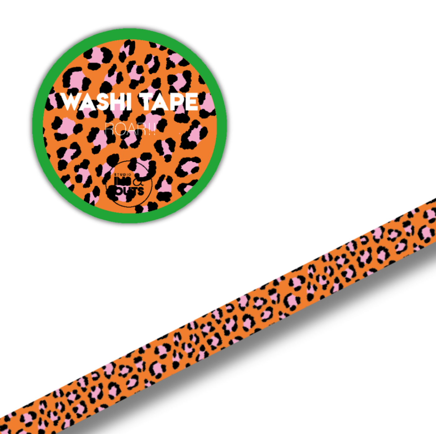 De bijpassende brede washi tape van 1,5 cm is bedrukt met een stoere panterprint in zwart op een oranje achtergrond. De tape is makkelijk af te scheuren, herpositioneerbaar en hecht goed op papier. Ideaal om pagina’s mee te omlijsten, foto's vast te plakken of gewoon als kleurrijke decoratie.