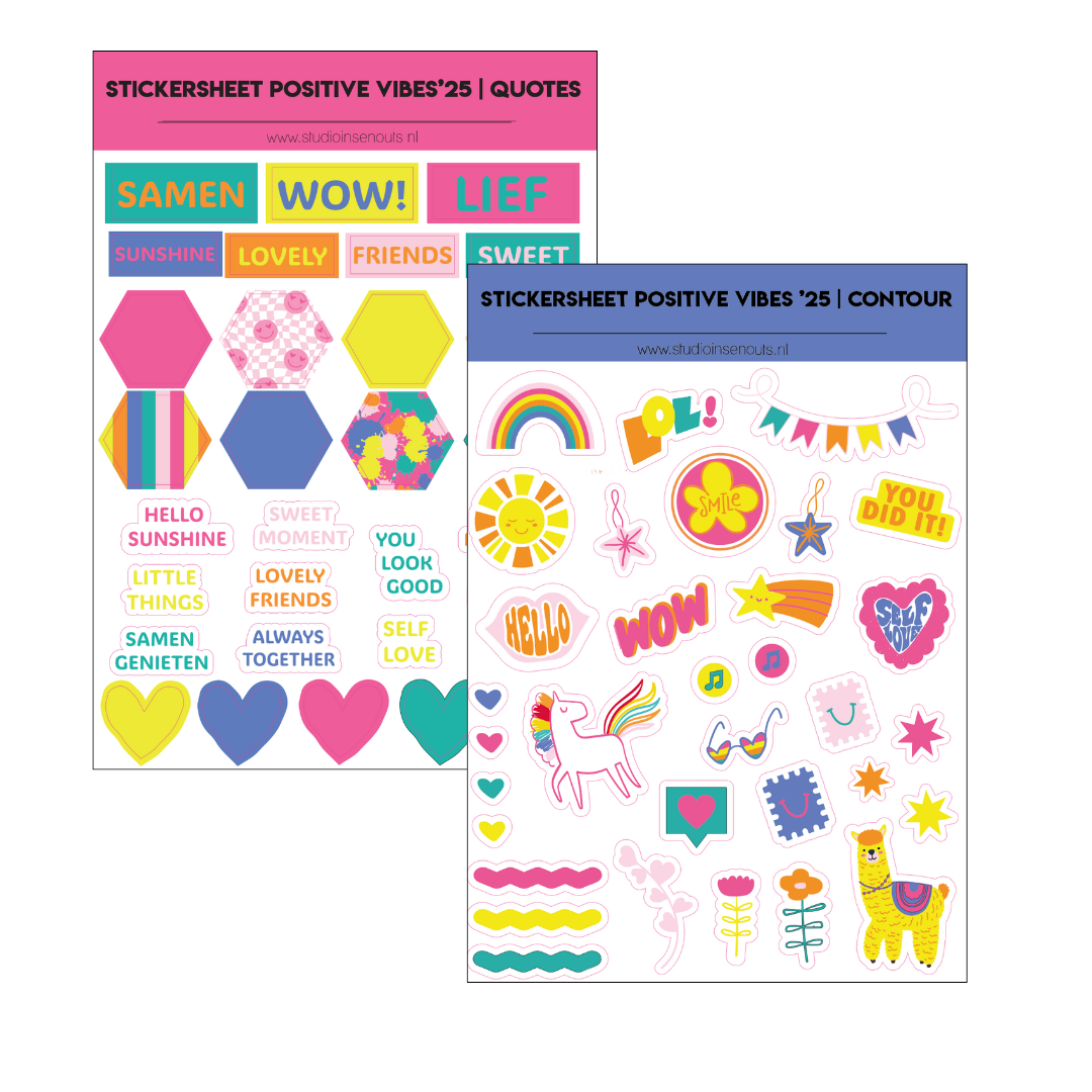• Stickervel Quotes met woorden als “WOW!”, “LIEF”, “YOU LOOK GOOD”, “Mijn Favoriet” en “Hello Sunshine”