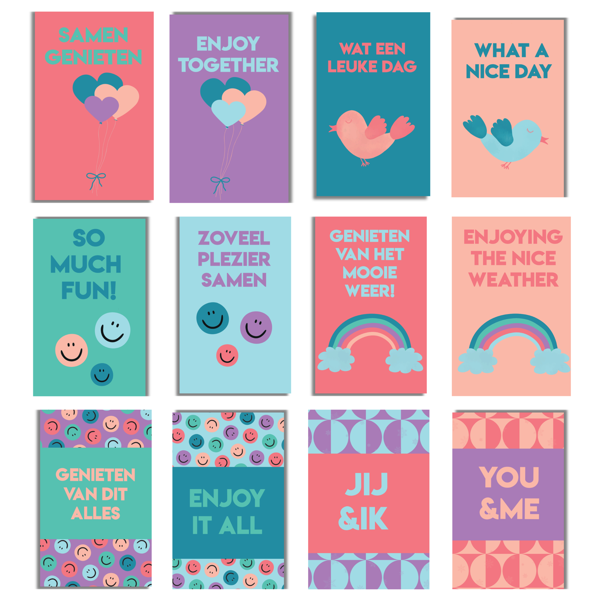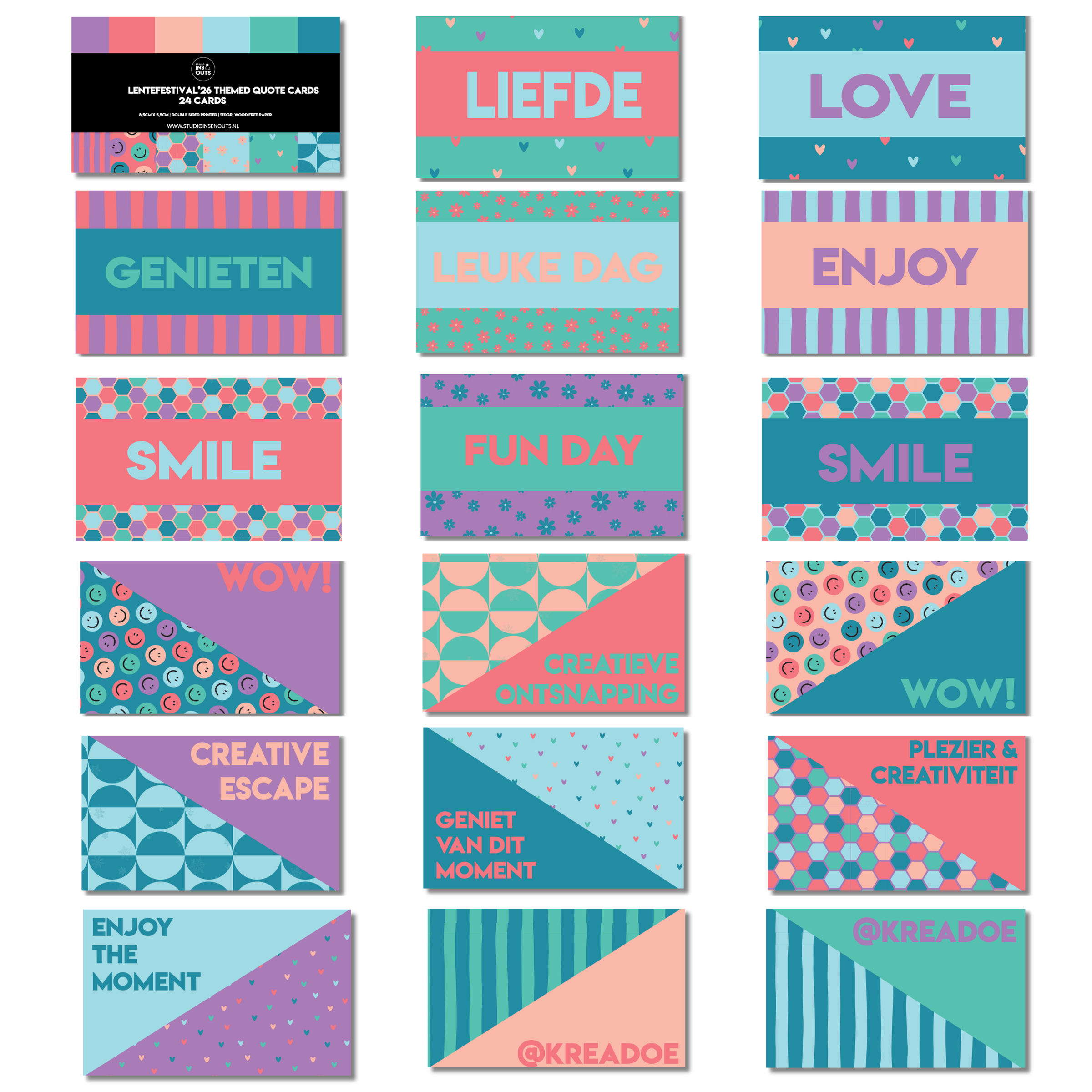 - Aantal: 24 quote kaartjes (dubbelzijdig)