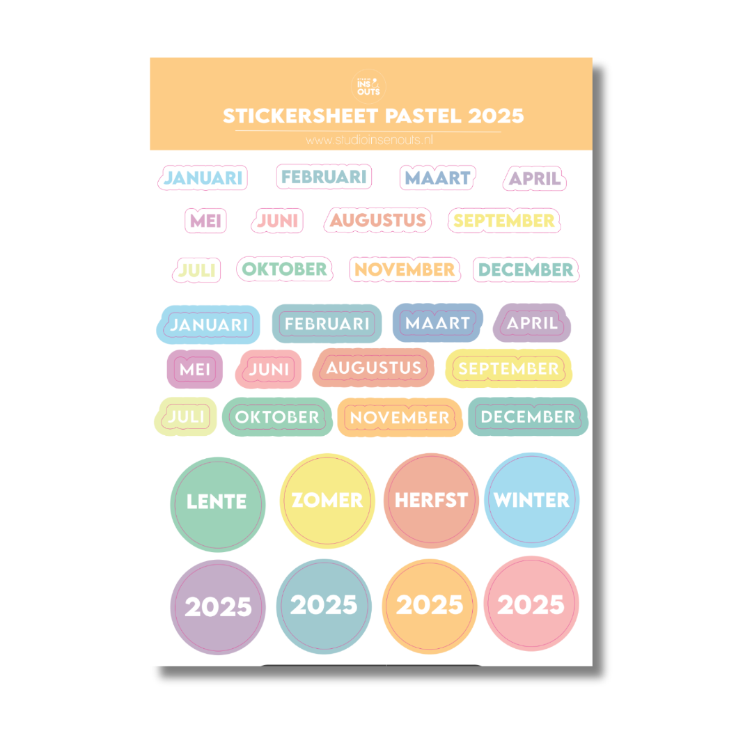 Stickervel Maanden 2025 - Pastel Kleuren