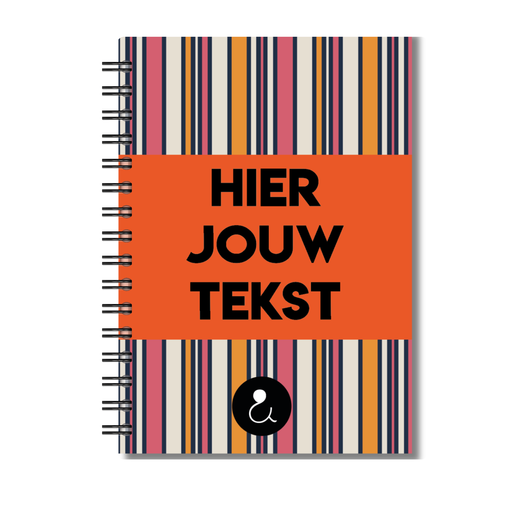 Dit op maat bullet journal A5 met roze en oranje strepen is een persoonlijk journal dat je volledig naar wens samenstelt. Laat je eigen tekst of naam op de kaft drukken en creëer een bullet journal op maat dat past bij jouw stijl. Het compacte journaling boek heeft een stevige ringband en is voorzien van blanco pagina’s van dik papier, geschikt voor schrijven, tekenen en creatieve layouts. Gebruik dit creatief notitieboek voor dagelijkse planning, herinneringen, inspiratie of als persoonlijk plakboek. Een veelzijdig bullet journal met eigen cover, ideaal als uniek cadeau of voor je eigen creatieve ritueel.