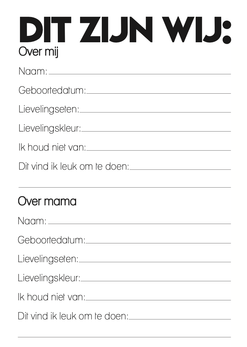 • Voorin ruimte om jullie voor te stellen: een stukje over mama en een stukje over haar kind