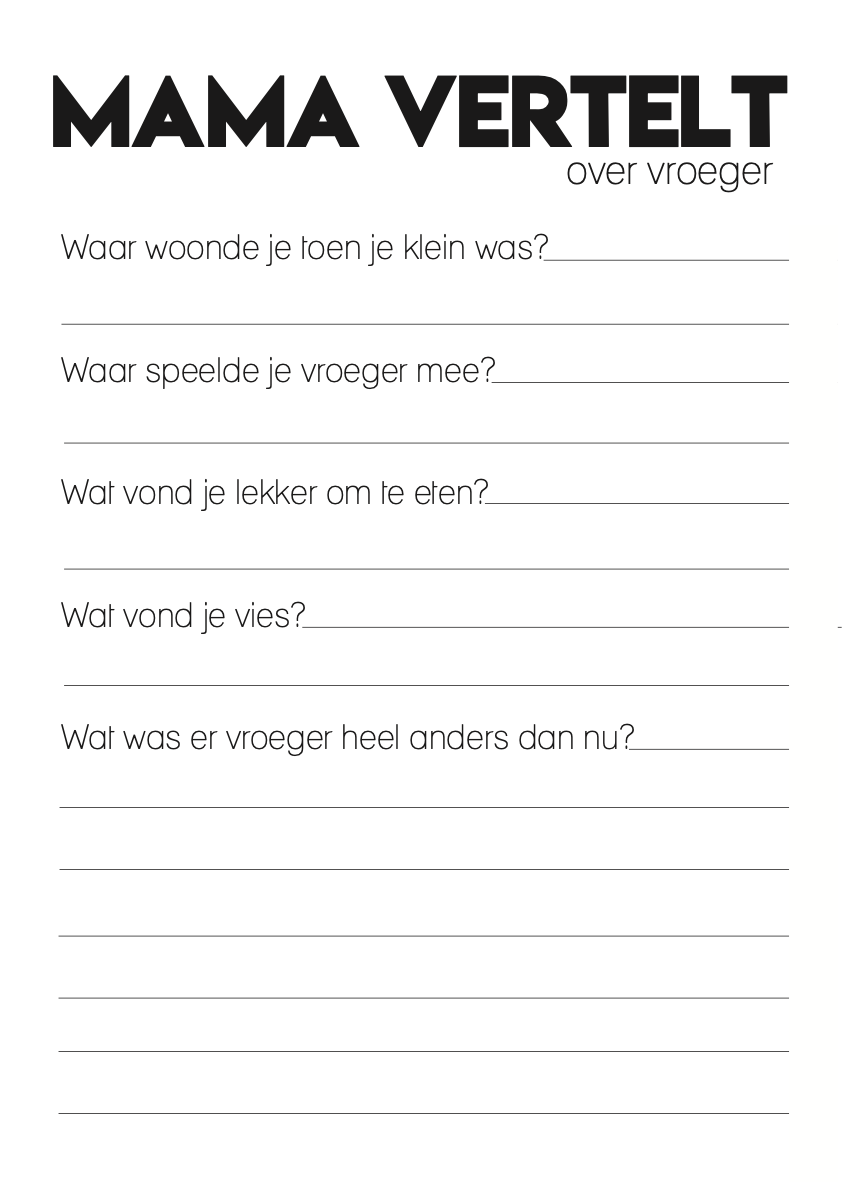 • Beantwoord vragen over mama’s leven van vroeger – waardevol voor nu én voor later