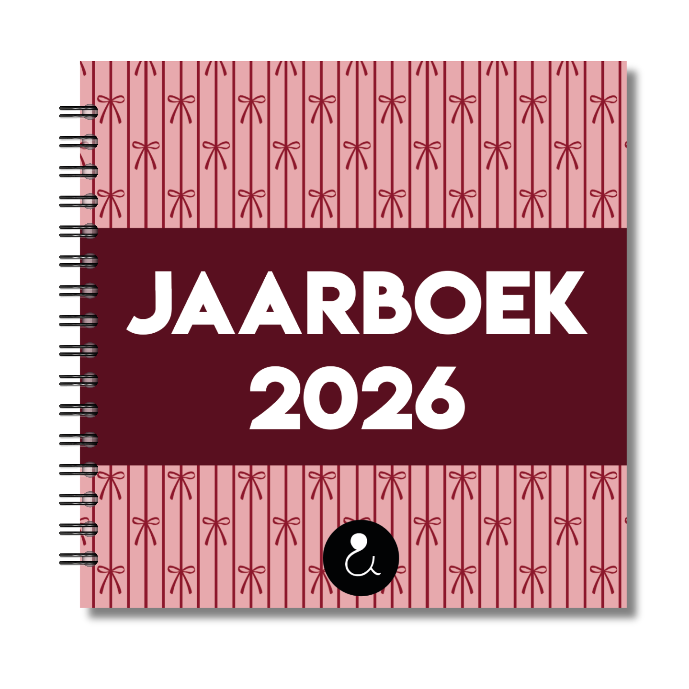 Jaarboek 2026 | Invulboek 2026 | Fotoboek Jaarboek | Strikjes Roze Bordeaux Rood
