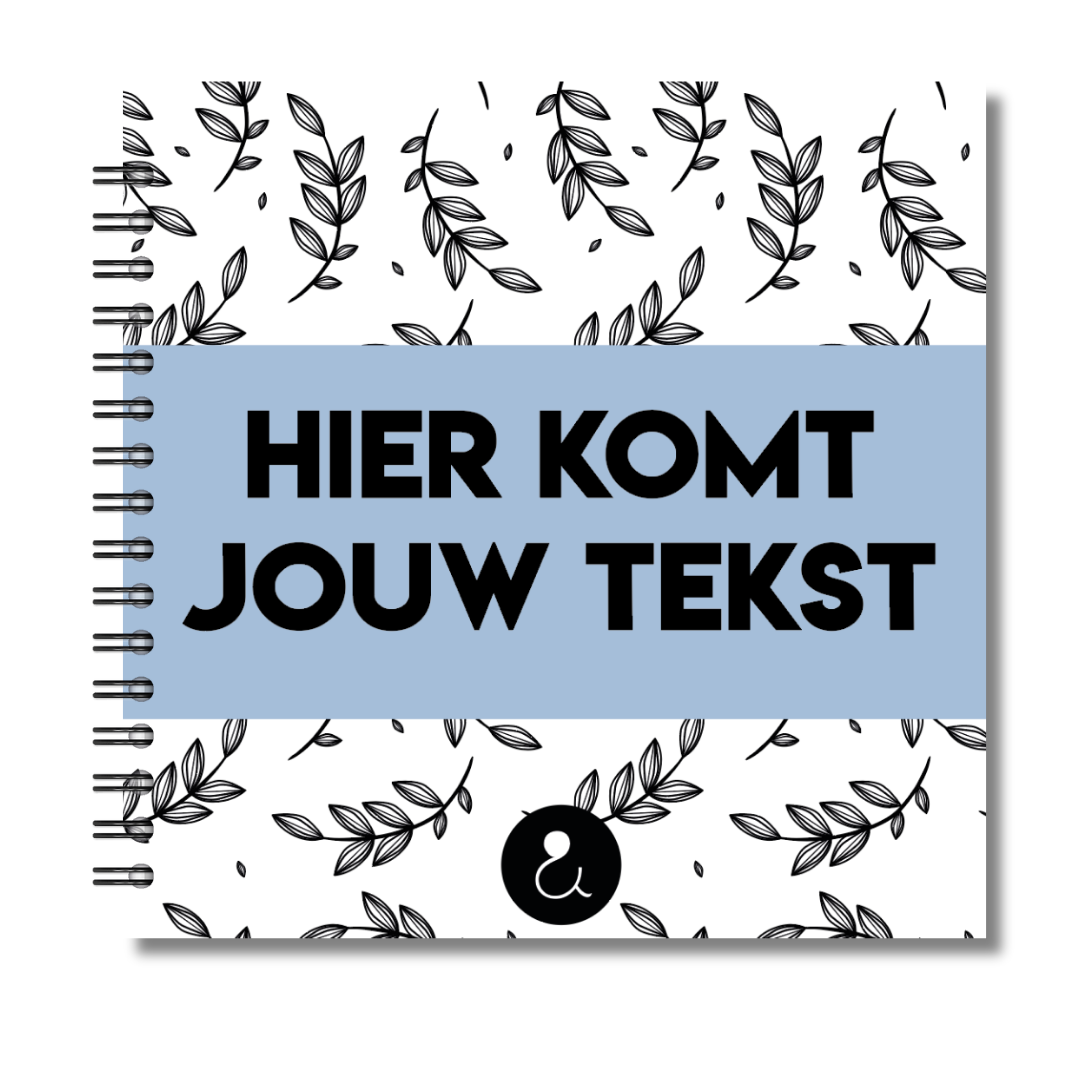 Dit gepersonaliseerde fotoboek plakboek met zwart-wit takjes (botanical) patroon en een blauwe band is perfect voor liefhebbers van een frisse, minimalistische stijl. Het moderne ontwerp past bij elke gelegenheid – van reisfoto’s tot bruiloftsherinneringen of creatieve scrapbook pagina’s. Laat je eigen naam of tekst op de kaft drukken en maak er een uniek persoonlijk scrapbook van. De stevige kaft, ringband en hoogwaardige afwerking zorgen ervoor dat dit gepersonaliseerde plakboek lang mooi blijft.
